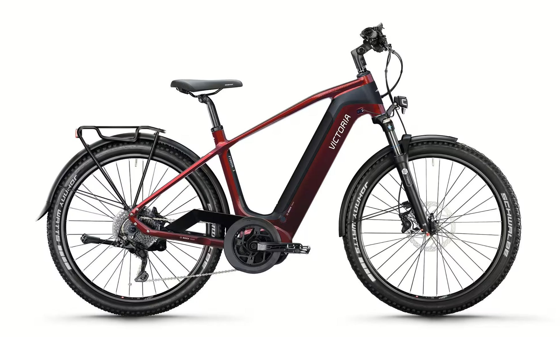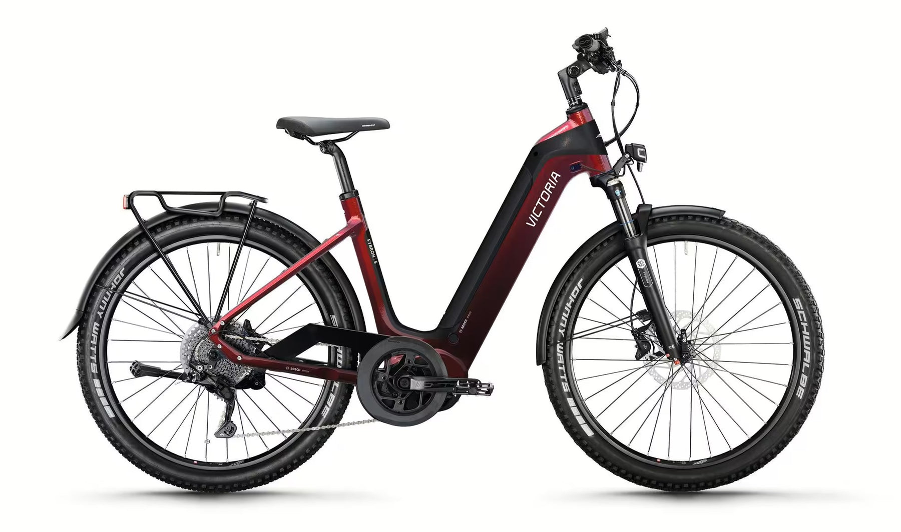 Alle "FYBRON"-Modelle sind in zwei Rahmen-Versionen erhältlich. Wie bei allen Victoria Neuentwicklungen ist die Entnahme des im Unterrohr integrierten Bosch PowerTube Akkus nach oben möglich, kann aber natürlich auch in eingebautem Zustand direkt im Bike geladen werden.